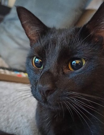 Une fois à la maison, apeuré et traumatisé il passait ses journées sous le canapé ne sortant que pour se nourrir ou faire ses besoins. Seule ma fille, d’un naturel très calme, à su l’approcher, un jeu de patience qui a duré deux mois.